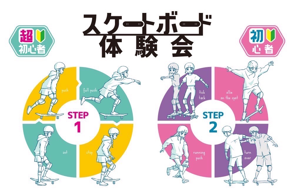アクションスポーツ専門店『ムラサキスポーツ』によるスケートボードスクールを開催! 初めて体験したい人・レベルアップしたい人それぞれのレベルに合わせた講習を親切丁寧におこなっています。 皆さまの参加をお待ちしています。